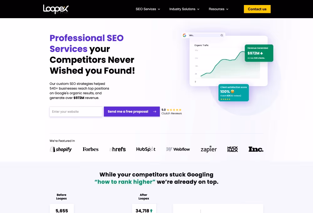 Loopex Digital offers a laser-focused approach to SEO that achieves considerable results, albeit with a bit higher price tag, making them a top choice for manufacturers aiming to dominate search rankings and with additional capital to put behind dedicated marketing campaigns. Their meticulous audits, content strategies, and digital PR campaigns have consistently delivered substantial traffic gains for clients in niche manufacturing sectors, including luggage manufacturing company Eminent.