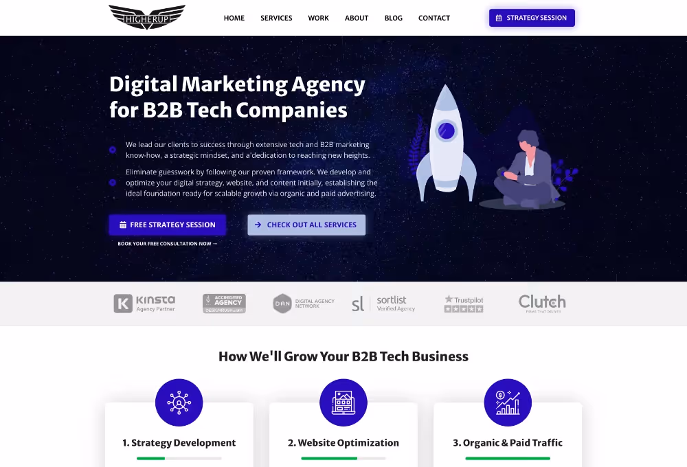 HigherUp Digital specializes in crafting tailored digital marketing strategies for large-scale industrial and manufacturing companies. Their approach combines deep industry knowledge of equipment, services, and processes with innovative techniques, ensuring clients not only keep up but lead in their respective markets. From content creation to SEO, HigherUp Digital provides comprehensive solutions that drive measurable results for manufacturing companies.