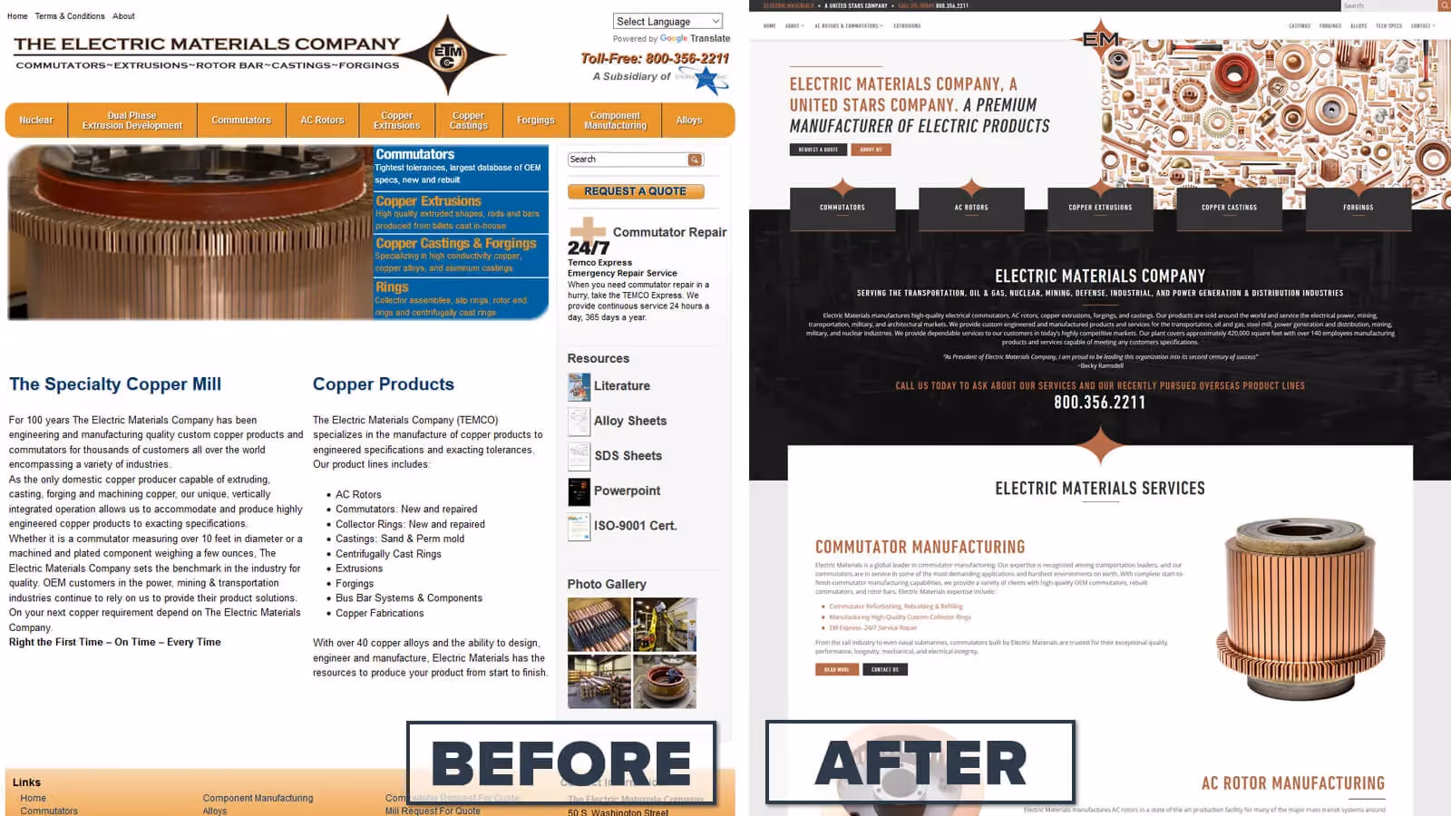 Marketers love to use the old adage that “your website is your first impression” and they aren’t entirely wrong—but what’s really making the impression on your website? The brand. The brand is the true first impression. Before you read any content or try navigating through the site, you have already subliminally gauged what kind of company it is through the colors, taglines, and imagery was chosen. If you don’t have a good brand to build around, your website is going to look templated or worse—generic. Take a look at one of weCreates’ clients. We took their old website, and completely rebranded them as a company and portrayed it onto their new website.