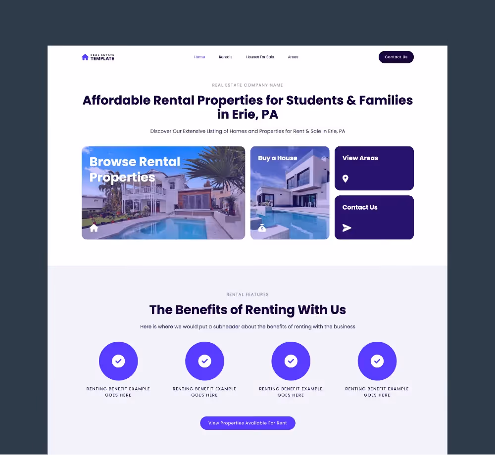 Our real estate starter website is a streamlined, professional online presence built to showcase listings, build credibility, and generate leads. It includes essential features like property galleries, contact forms, and mobile responsiveness—perfect for new agents or smaller brokerages looking to make a strong first impression without the complexity of a custom build.